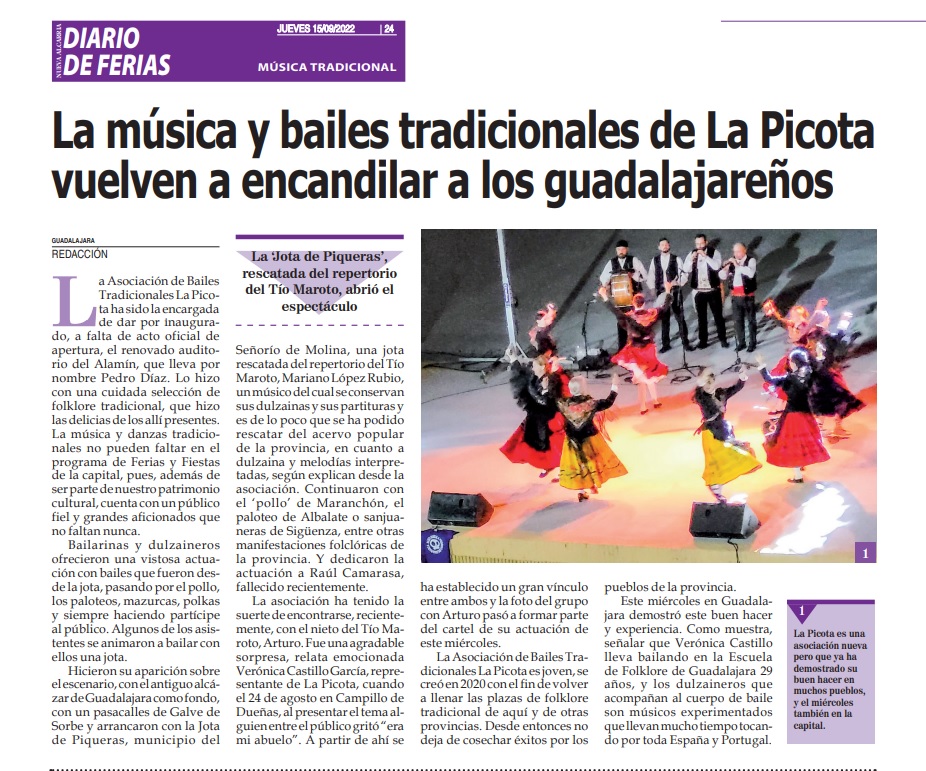 Reportaje del Diario de Ferias de Nueva Alcarria, sobre la actuación de La Picota en el auditorio Pedro Díaz