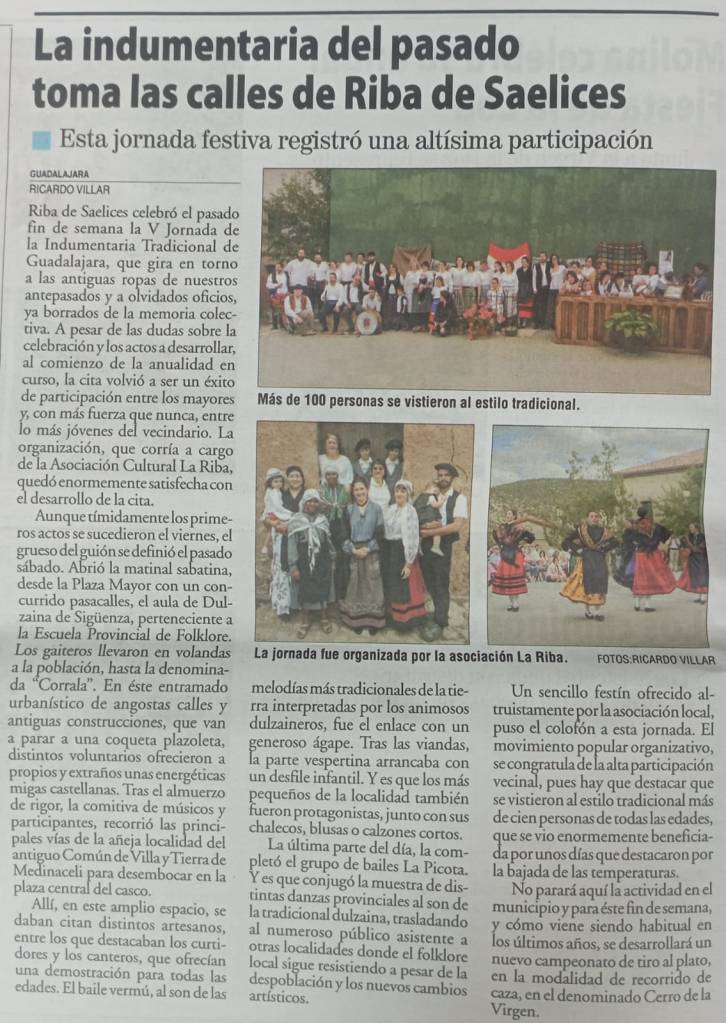 Noticia de Nueva Alcarria sobre la V Jornada de la Indumentaria Tradicional de Guadalajara, en la que La Picota participó con una muestra de folklore de la provincia