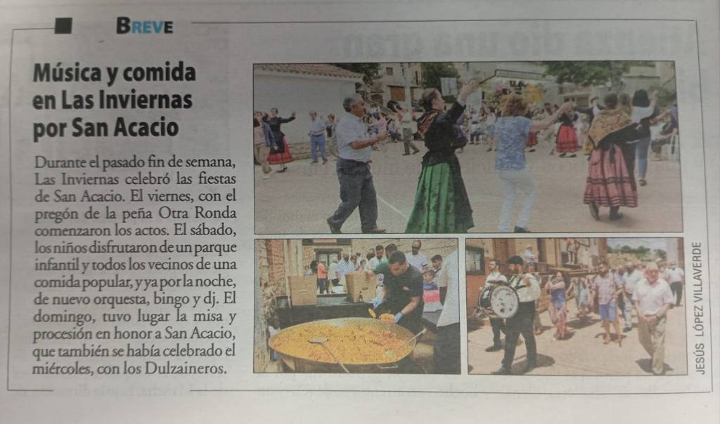 Breve referencia en Nueva Alcarria sobre la participación de La Picota en las fiestas de San Acacio de Las Inviernas